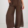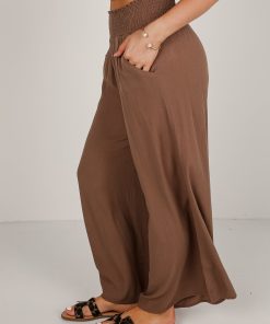 Summer living is effortless, especially when you’re wearing the Promises Kept Mocha Wide Leg Pants! Designed in a rich mocha hue, these high-waisted pants feature a flattering wide-leg silhouette that flows with ease. The soft, lightweight fabric offers all-day comfort while still looking polished. Perfect for dressing up or down, they pair beautifully with everything from crisp button-ups to cozy knits. Just add your favorite shoes and you’re ready for anything! Lightweight Woven Knit Fabrication Smocked Elastic Waistband Flowy Wide Pant Legs Side Pockets Made in the USA 100% Rayon Machine Wash Cold, Lay Flat to Dry Model is 5’6″ and wearing a Small.Garment Measurements in Inches:Small | Waist 24” (Stretches up to 32″) | Hips 46” | Length 38” | Inseam 27″Medium | Waist 26” (Stretches up to 34″) | Hips 48” | Length 39” | Inseam 27″Large | Waist 28” (Stretches up to 36″) | Hips 50” | Length 40” | Inseam 28″